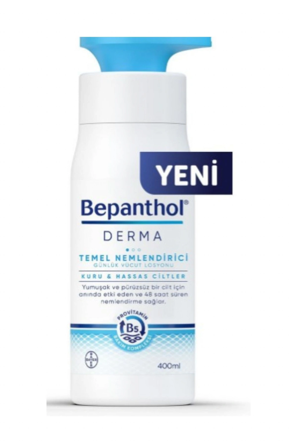 Yeni Bepanthol® Derma Temel Nemlendirici Vücut Losyonu, uzmanların onayladığı bileşenlerin özel kombinasyonuyla oluşan Provitamin B5 bakım kompleksine sahiptir. Provitamin B5 bakım kompleksi, cilt kuruluğu semptomlarını anında hafifletirken kuruluğun kaynağına inerek, cilt üzerinde uzun süreli kalıcı nemlendirme sağlar. Kuru ve hassas ciltlerin günlük kullanımına uygun olarak tasarlanmıştır