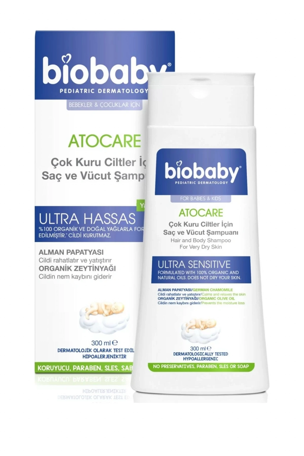Biobaby Atopik Çok Kuru Cilt. Saç Ve Vücut Şampuanı 300 Ml Biobaby Çok Kuru Ciltler için Saç ve Vücut Şampuanı, içeriğindeki Alman Papatyası ile cildi nemlendirir, temizler ve yatıştırır. Zeytin Yağı cilt tahrişlerini azaltıcı etki gösterir. Yağ bazlı bir şampuandır
