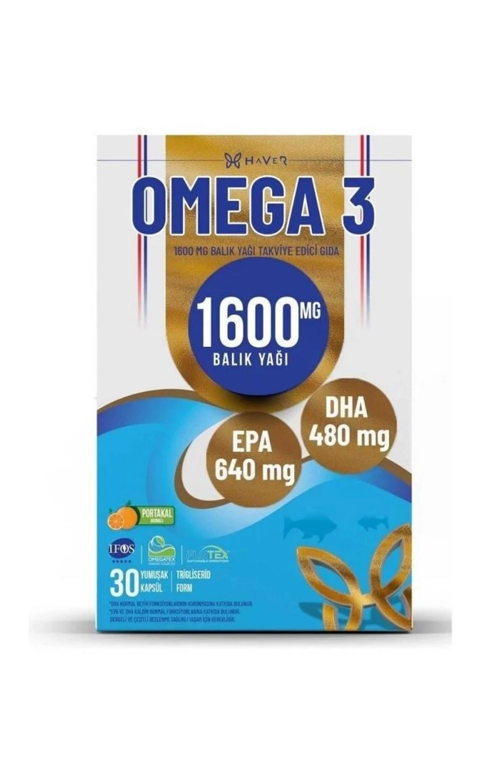 Haver Omega 3 1600 mg 30 KapsülÜrün İçeriğiHer kapsülBalık yağı 1600 mgOmega 3 1200 mgEPA 640 mgDHA 480 mgKullanım Şekli11 yaş ve üzeri yetişkinler için günde 1 kapsül alınması tavsiye edilir.